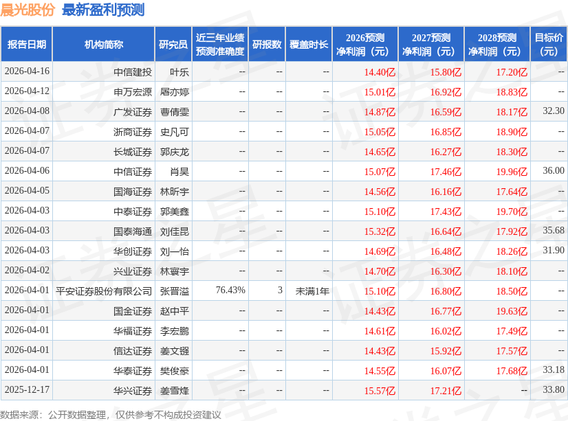 以下是详细的盈利预测信息: